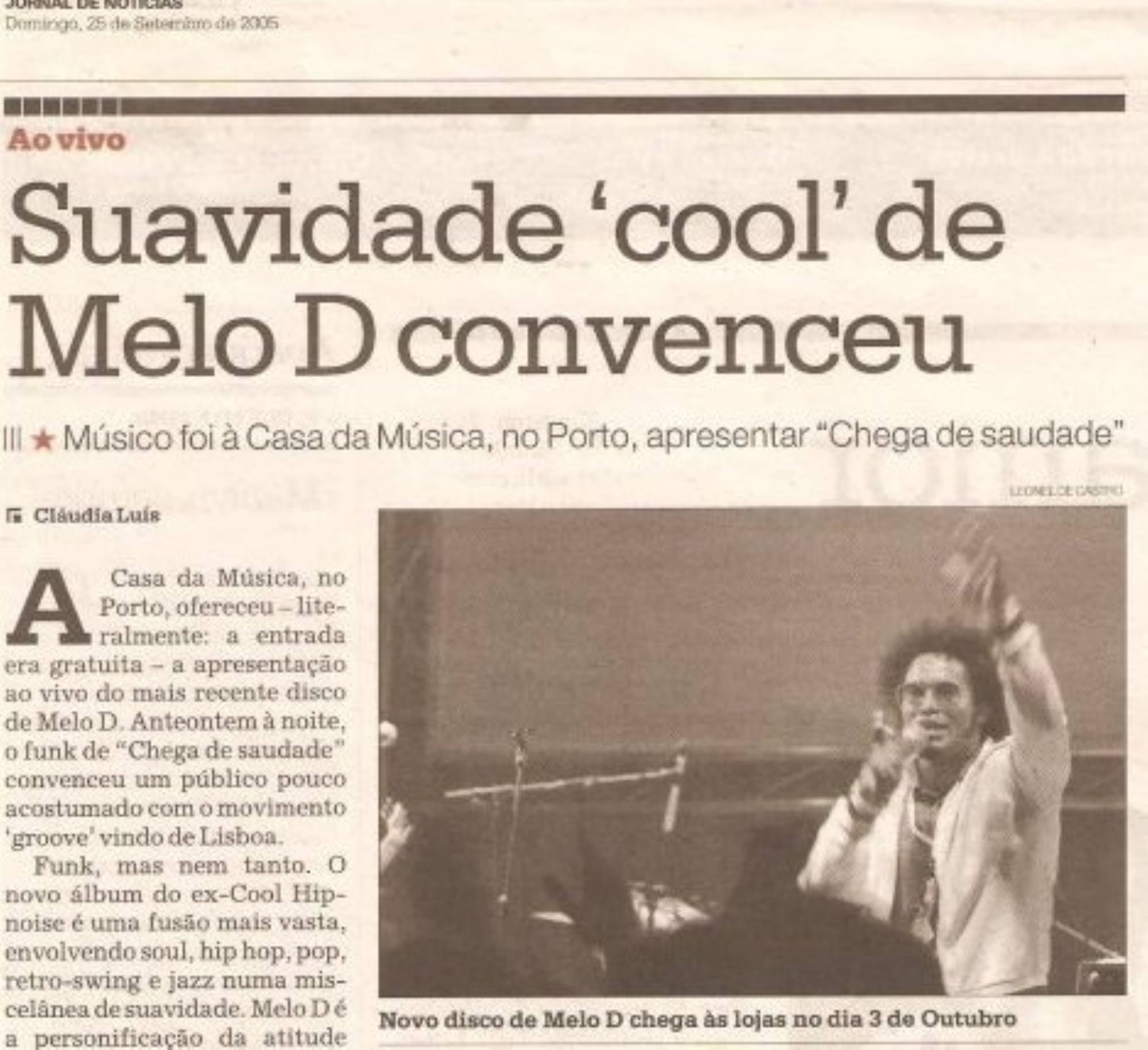 Neste trabalho, uma produção conjunta com a editora Enchufada, resultado de meia dúzia de ensaios com a sua GoodVibesBand, à qual se juntaram convidados de peso como Carlos Barreto no contrabaixo, ou N´dú na bateria, e alguns dos rappers mais significativos como Sam the Kid, Xeg, Kallaf, Tony Dread... A saudade é motivo para experimentar a criação de canções pouco saudosas, solarengas. Segundo Melo D, este é um disco ensombrado pela bossa nova. Um evidente desejo de criar soul à la portuguesa, procurando um som agradável e pairante procurando resgatar o formato canção, sem contudo, esquecer a experimentação.